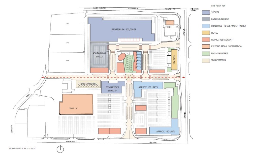Omni Development, in collaboration with local partners, is reimagining the 36-acre Country Fair Shopping Center into a dynamic mixed-use destination. The long-term vision includes a blend of retail, residential apartments, hotel accommodations, and youth-focused recreational facilities, supported by improved transit access and public gathering spaces.